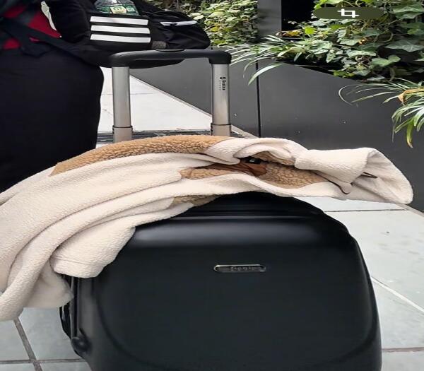 Please provide a detailed description of your lost item. If you lost a laptop, tablet, or cell phone, please provide details such as the make/model, color, and lock screen or background photo.: The suitcase is a carryon, black in color, with a logo that says “Genius” on the right side of the handle and on the front of the suitcase. Inside the suitcase, there are clothes and a colorful scarf. There’s also a white bag with green letters that contains a pair of black laceup boots. In addition, there is a black hair straightener and a light beige clothing iron, along with some items of sentimental value.