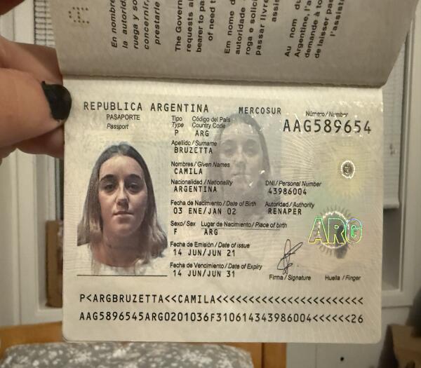 Its an argentinian passport whit the name Camila Bruzetta in it.