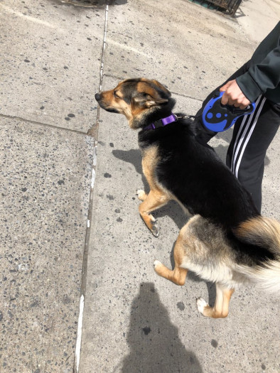 Got out the house somehow and ended up going to a hardware store around the block and a man with yellow American airline jacket came in and claimed it was his dog and took it without providing any proof it was his. We need to find him ASAP